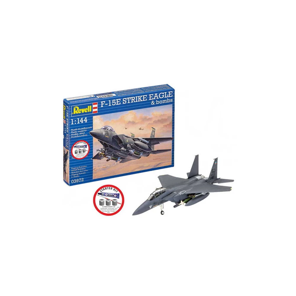 Revell 1:144 Starter Kit F-15E Strike Eagle & bombs makett repülő. Összeállítást, ragasztást és festést igényel.